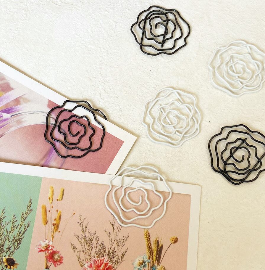 【 クリップ ローズ 】12個入 ホワイト ブラック バラ 薔薇 ゼムクリップ 文房具 オフィス バインダー ステーショナリー デスクアイテム 白 黒