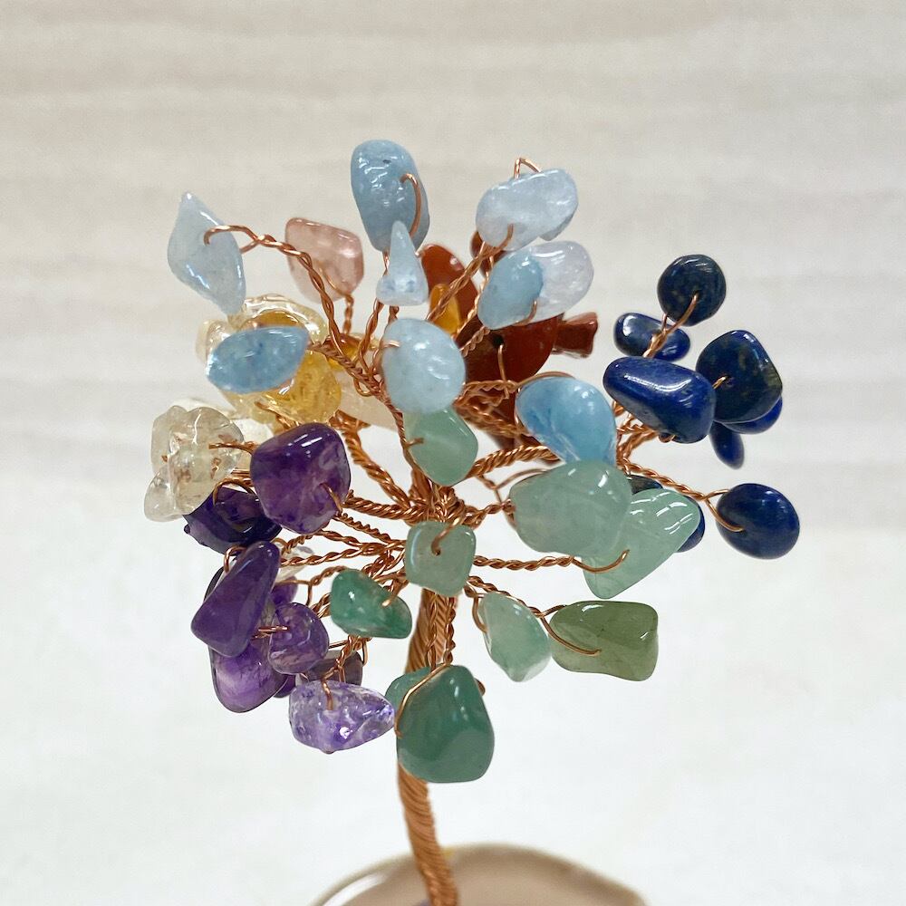 7つのチャクラに当たるそれぞれの天然石が華やかに散りばめられたツリーです。