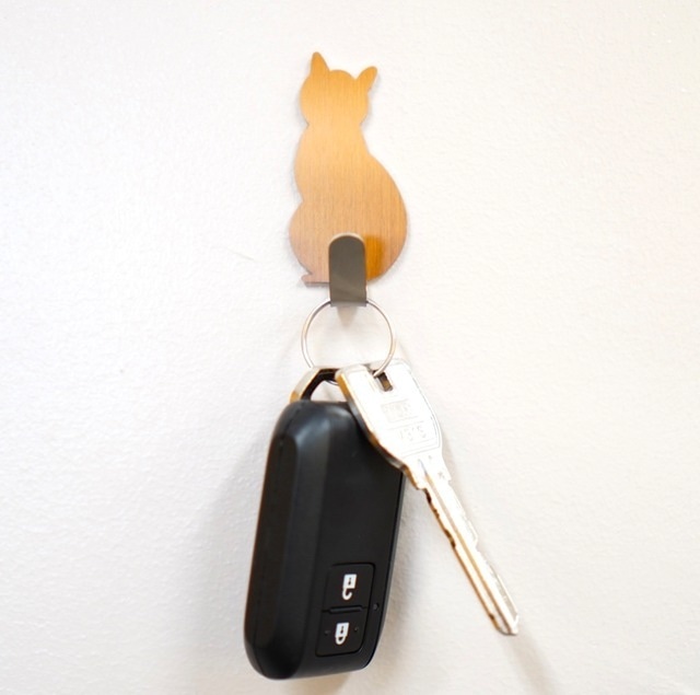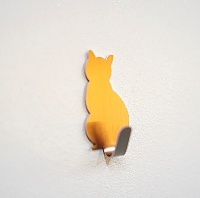 【キャットテールフック 】1個 ゴールド 壁に貼り付けタイプ キーフック 鍵 玄関収納 カワイイ かわいい ネコ ねこ 猫 にゃんこ グッズ 尻尾 しっぽ シッポ 動物のしっぽ 便利 新生活 引っ越し