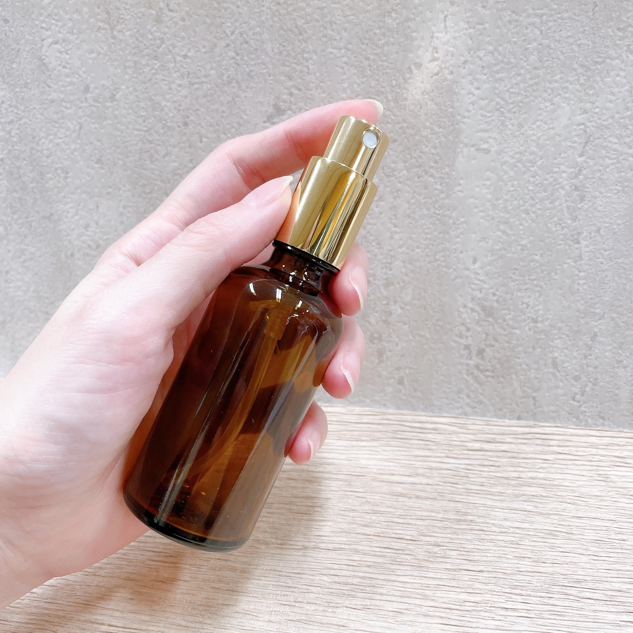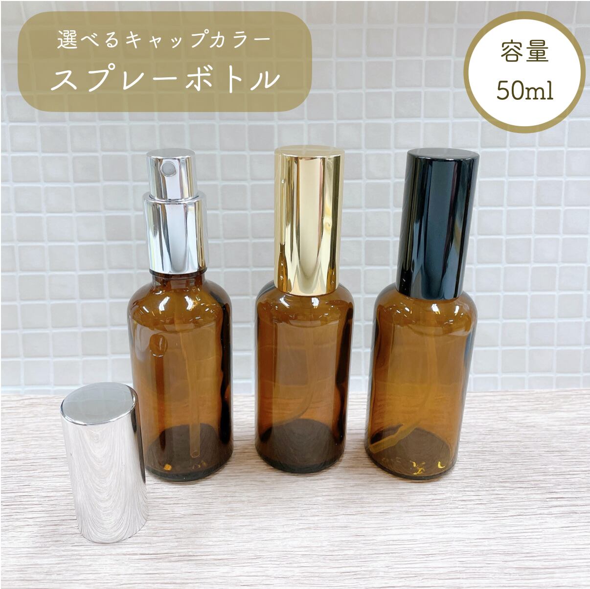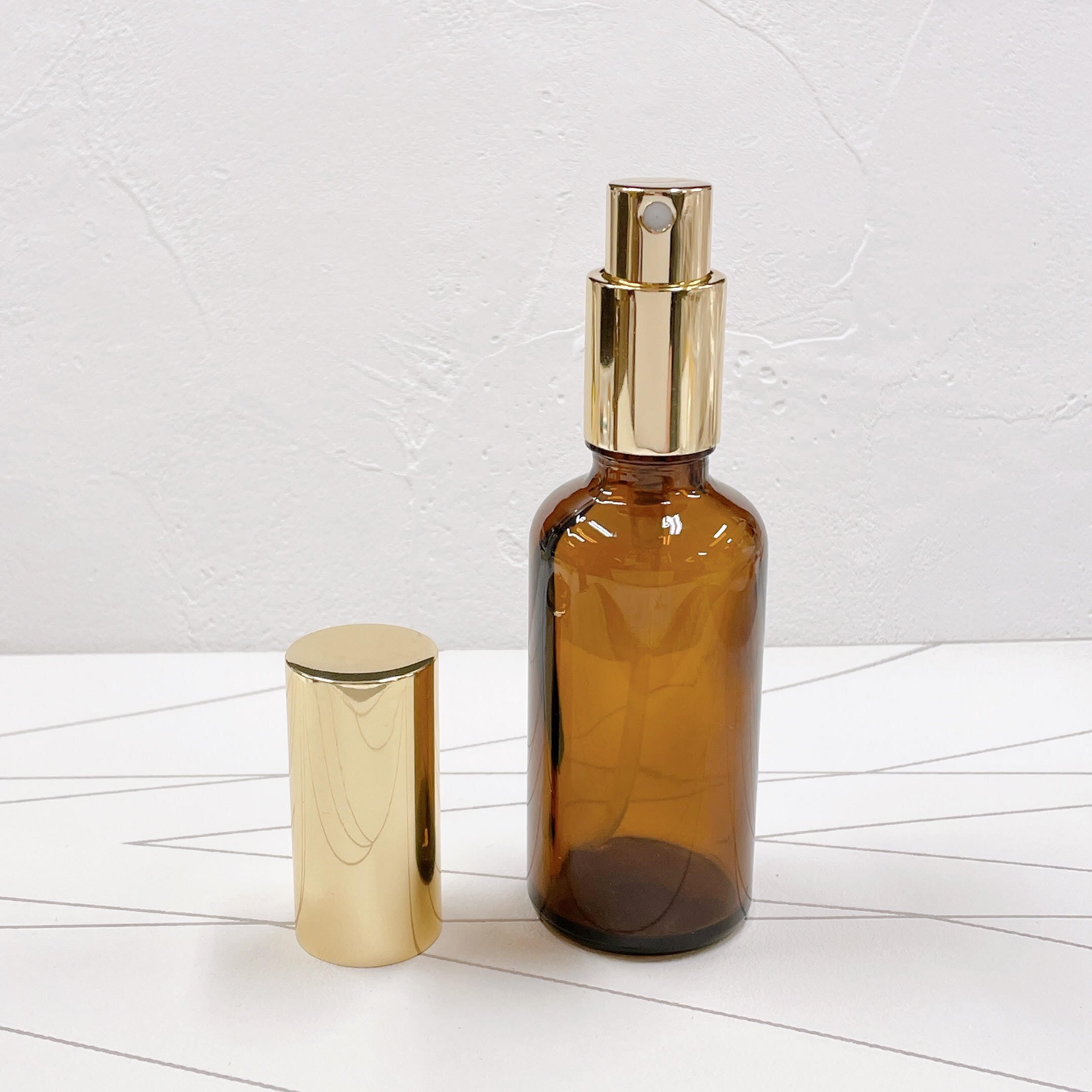 【 スプレーボトル 50ml 】ブラウン 選べるキャップ ガラス製 詰替 容器 透明 遮光 ミスト 化粧水 アロマ 美容 高級感 瓶 手作り ハンドメイド
