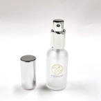 レソポンロゴ入り【目盛り付き スプレーボトル】30ml 選べるキャップカラー フロスト加工 乳白色 ガラス製 高級 エッセンシャルオイル 美容液 アロマ 詰替 容器 手作り おしゃれ