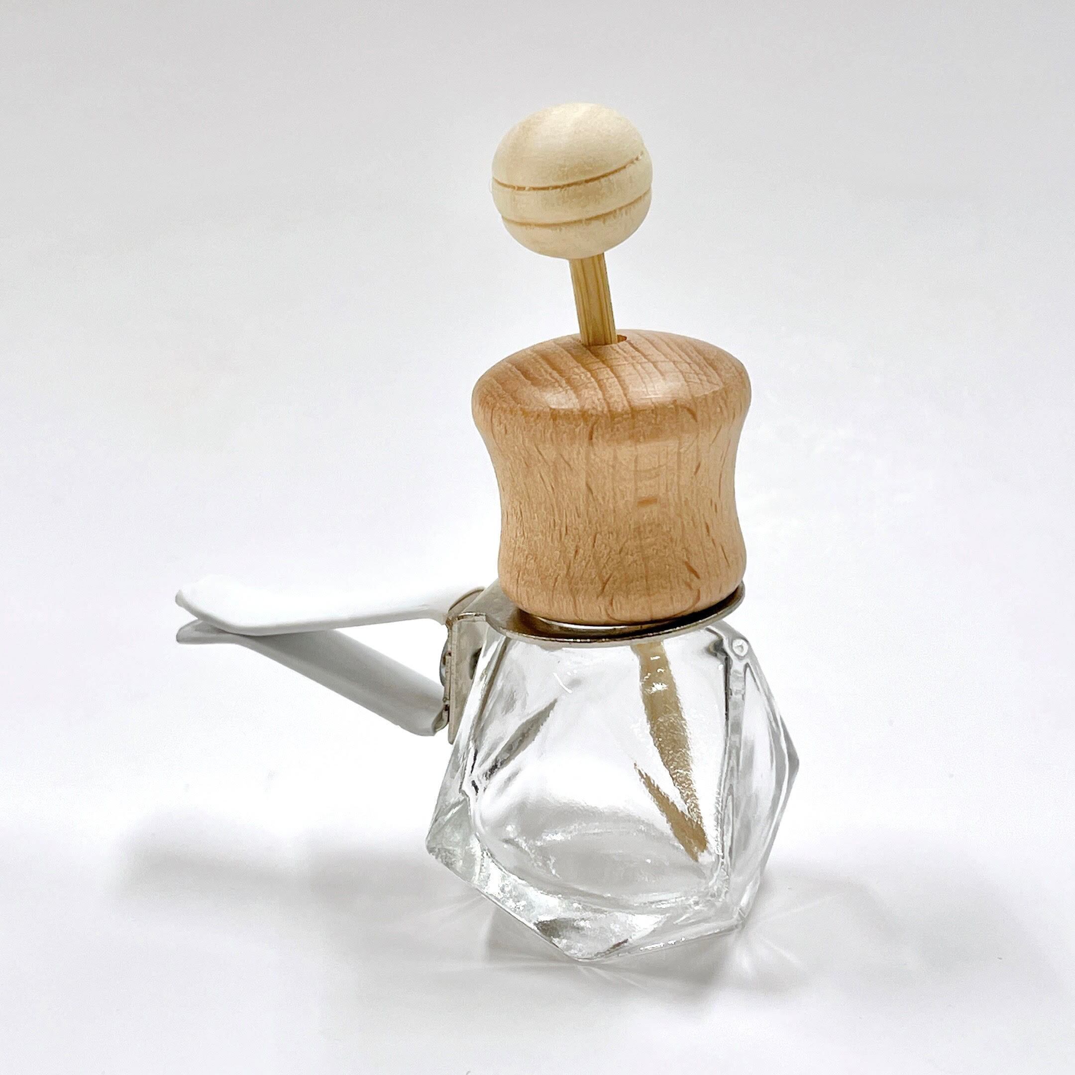 【車用ディフューザー ダイヤカット 詰替 ボトル】10ml 木製キャップ カークリップ カーフレグランス ドライブ エアコン 冷房 車 精油 車内 香水 アロマ エッセンシャルオイル おしゃれ 可愛い 北欧 ナチュラル