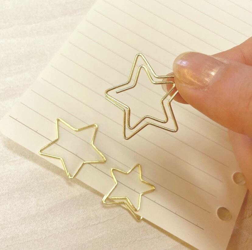【ダブル スター クリップ】12個入り ゴールド ゼムクリップ ペーパークリップ 学校 ステーショナリー ブックマーク ラッピング 文房具 デスクアイテム かわいい