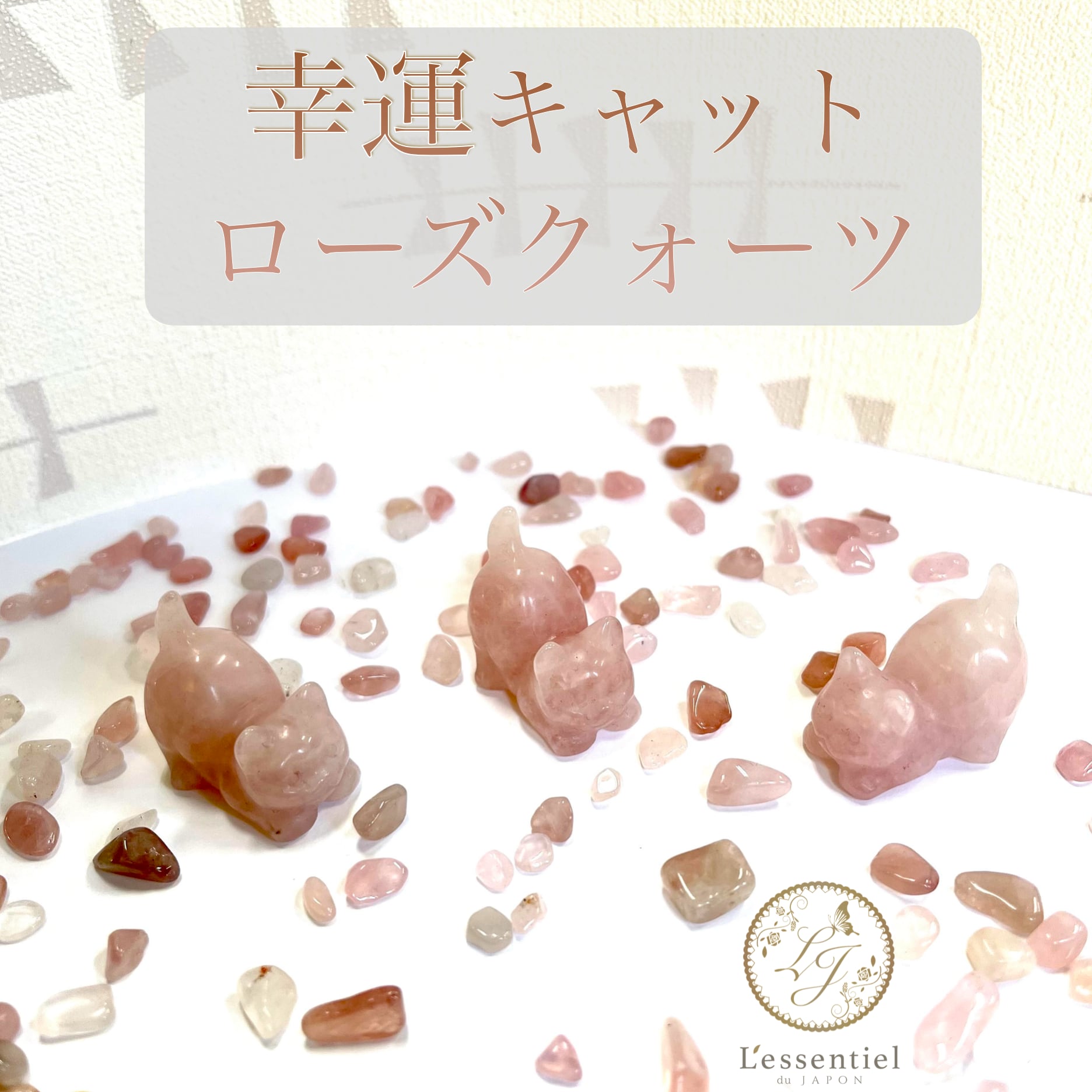 【 飾れる お守り 】幸運 キャッツ 猫 ネコ 縁起 大吉 パワーストーン 手作り 天然石 ローズクォーツ 恋愛 金 ペット 家族 愛 運気 星座 占い インテリア オブジェ 置物 周波数 エネルギー
