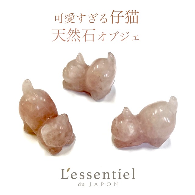 ローズクォーツの美しいパワーストーンが猫形になりました。