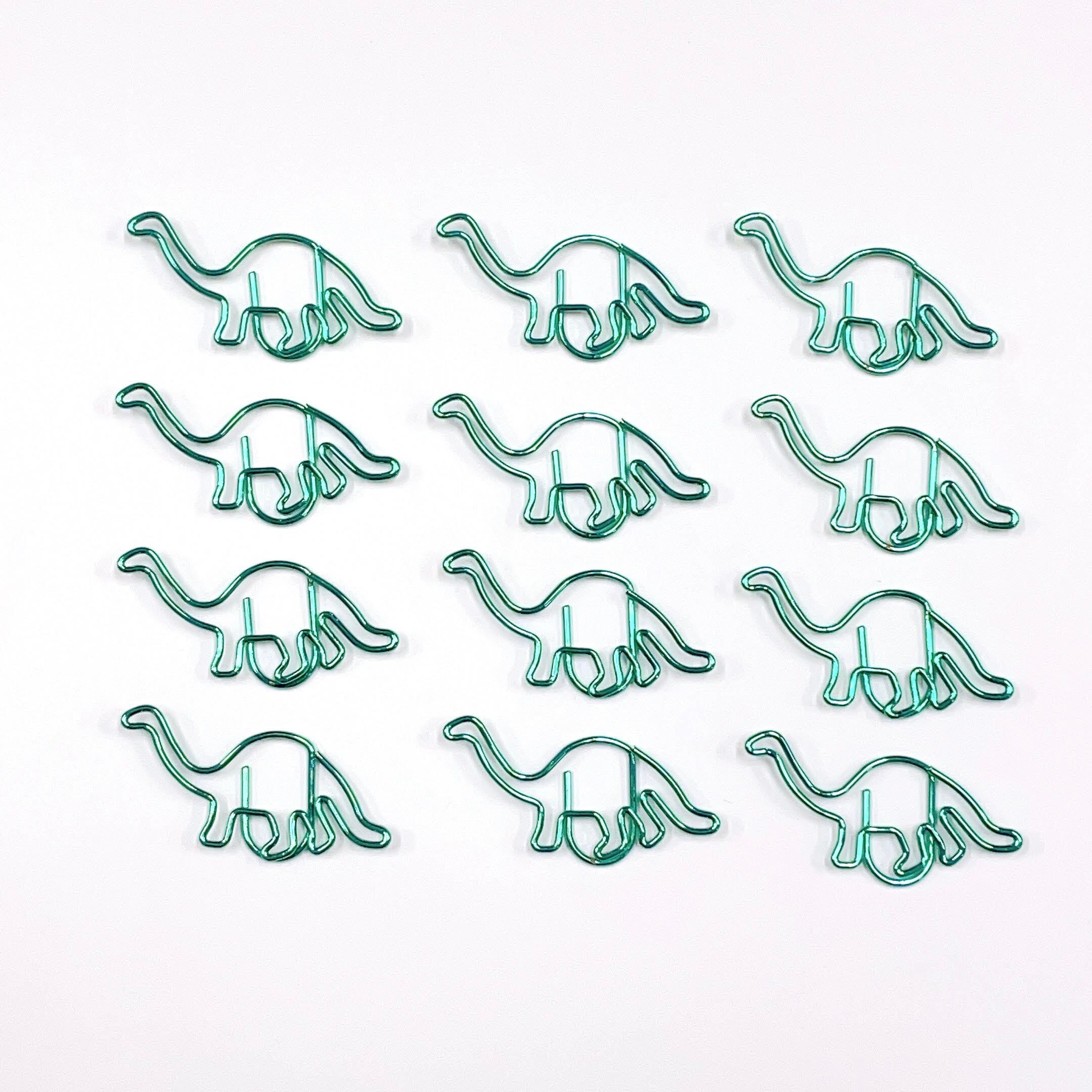 【恐竜 クリップ】12個入り メタリック グリーン 緑 ブラキオサウルス ダイナソー 草食動物 子供 男の子 文房具 ゼムクリップ バインダー ノート オフィス ペーパー 事務 学校