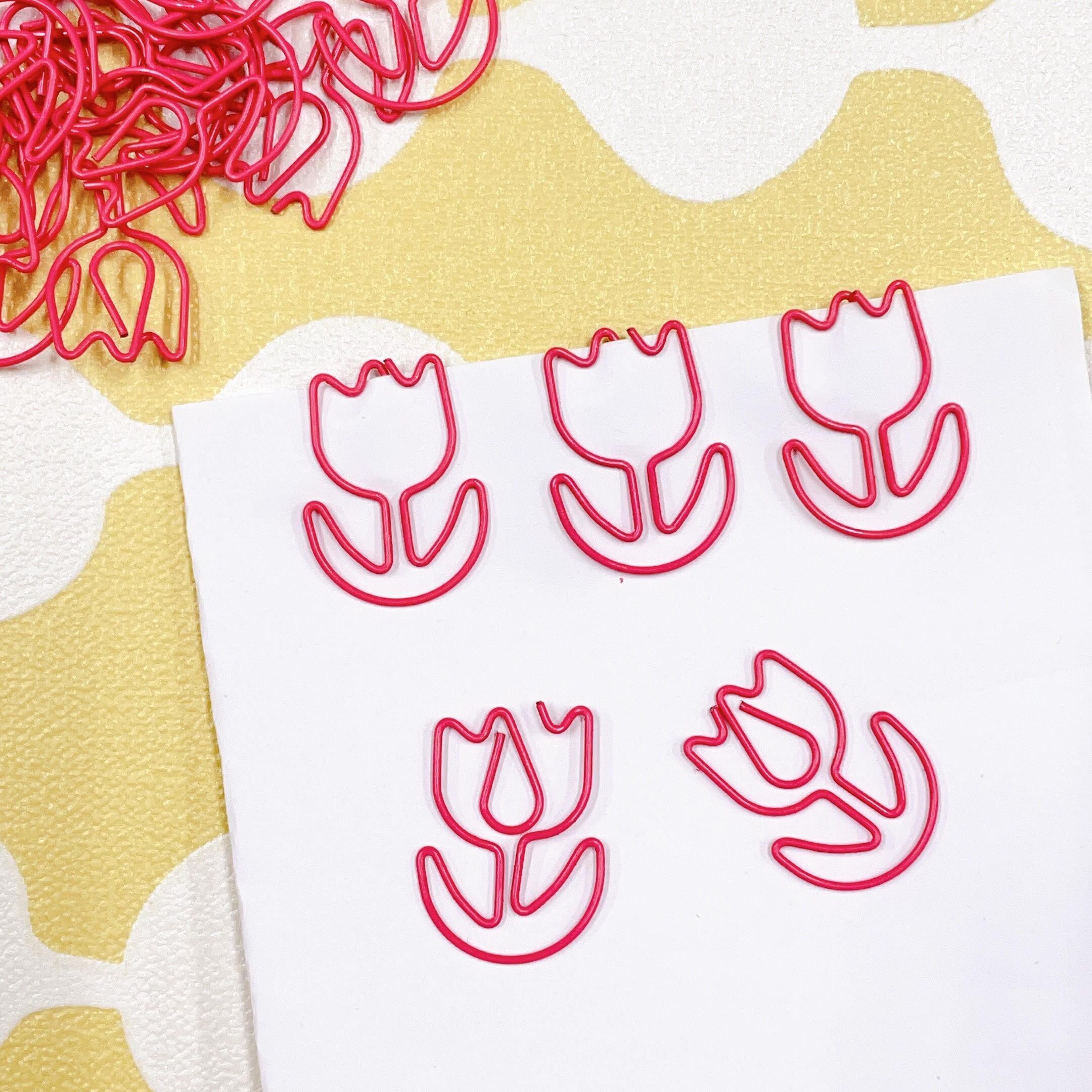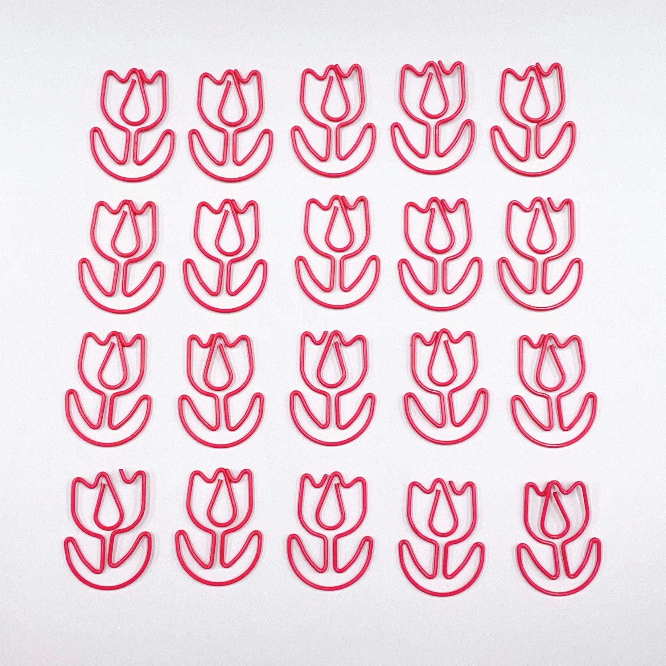 【 チューリップ クリップ 】20個入り マットピンク お花 フラワー 学校 ポップ 女の子 かわいい ゼムクリップ 文房具 バインダー ノート オフィス ペーパー 事務