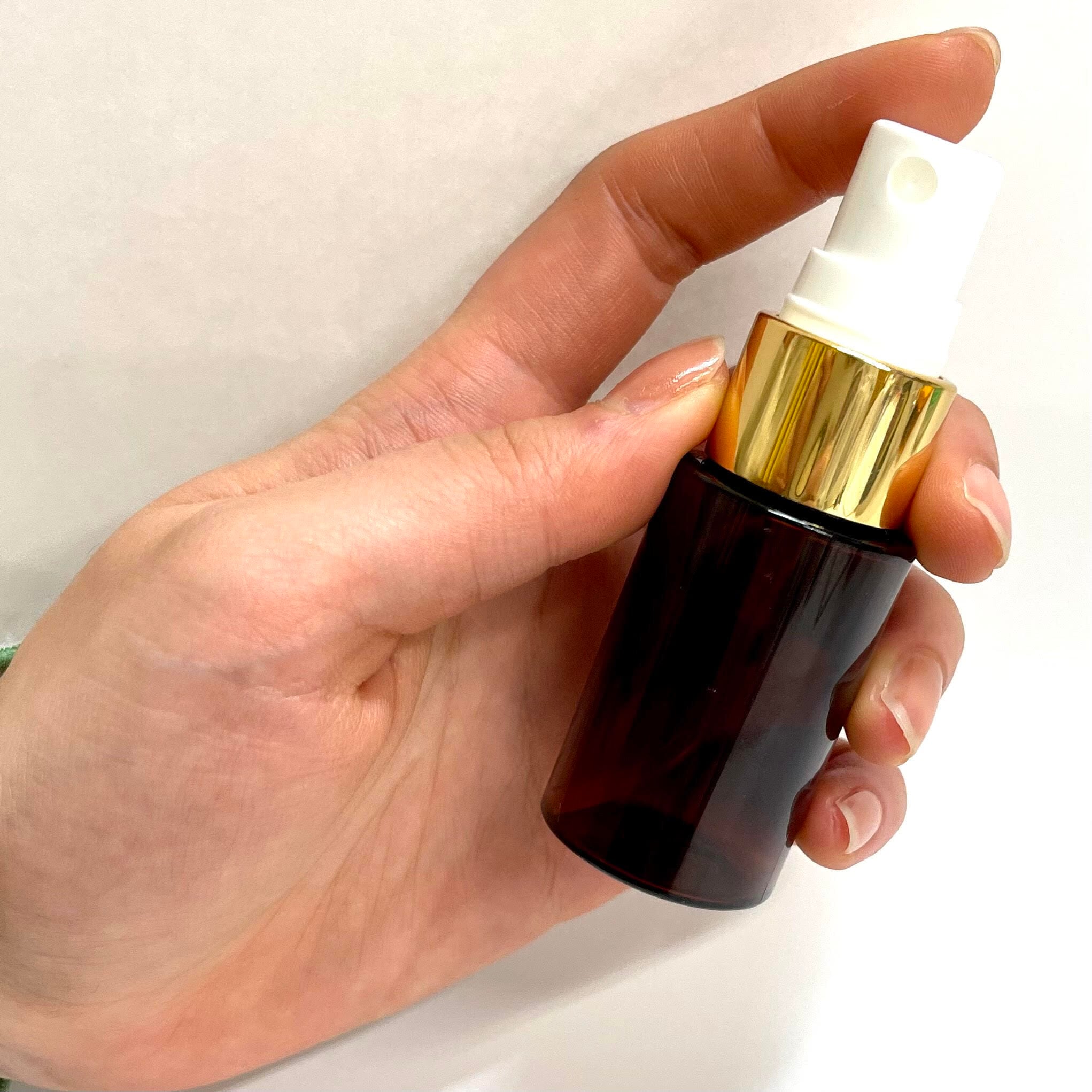 【 太丸 スプレー 容器 】ゴールド キャップ 20ml 茶 緑 青 全3色 プラスチック 白ノズル ポーチサイズ アロマ 遮光 軽量 お掃除 除菌 消臭 詰め換え 詰替 (角肩)