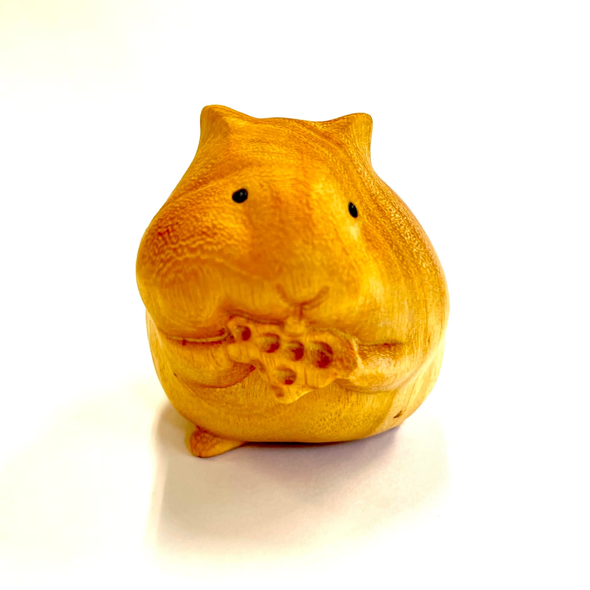 【 手のひら ハムスター 】 手作り 木彫り ペット 木製 オブジェ 幸運 キンクマ ハンドメイド デスク 癒し 動物 餌 オモチャ 自然