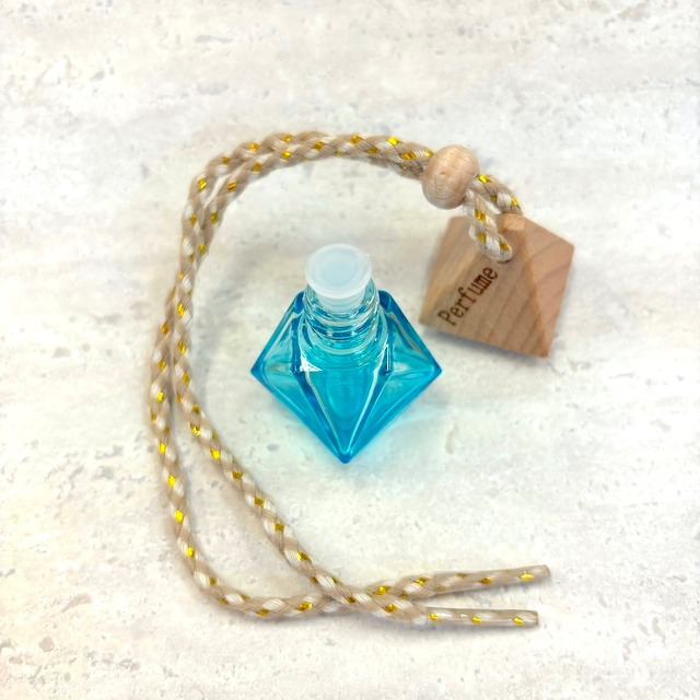 【 吊り下げ ディフューザー《ブルー》 】ダイヤモンド ウッド ミニ 小型 詰替 ボトル 5ml 木製キャップ ミサンガ 車 玄関 トイレ カーフレグランス 精油 香水 アロマ エッセンシャルオイル おしゃれ 可愛い 北欧 ナチュラル