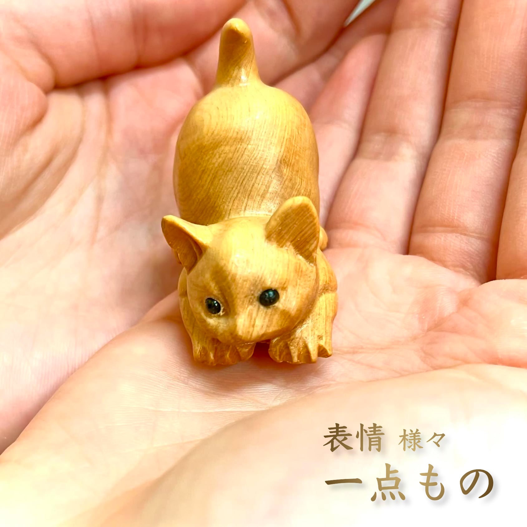 【 手のひら 子猫 】 手作り 木彫り ペット 天然 木製 キティ 赤ちゃん ベイビー オブジェ 幸運 ネコ ハンドメイド デスク 癒し 動物 餌 オモチャ 自然 誕生日 プレゼント