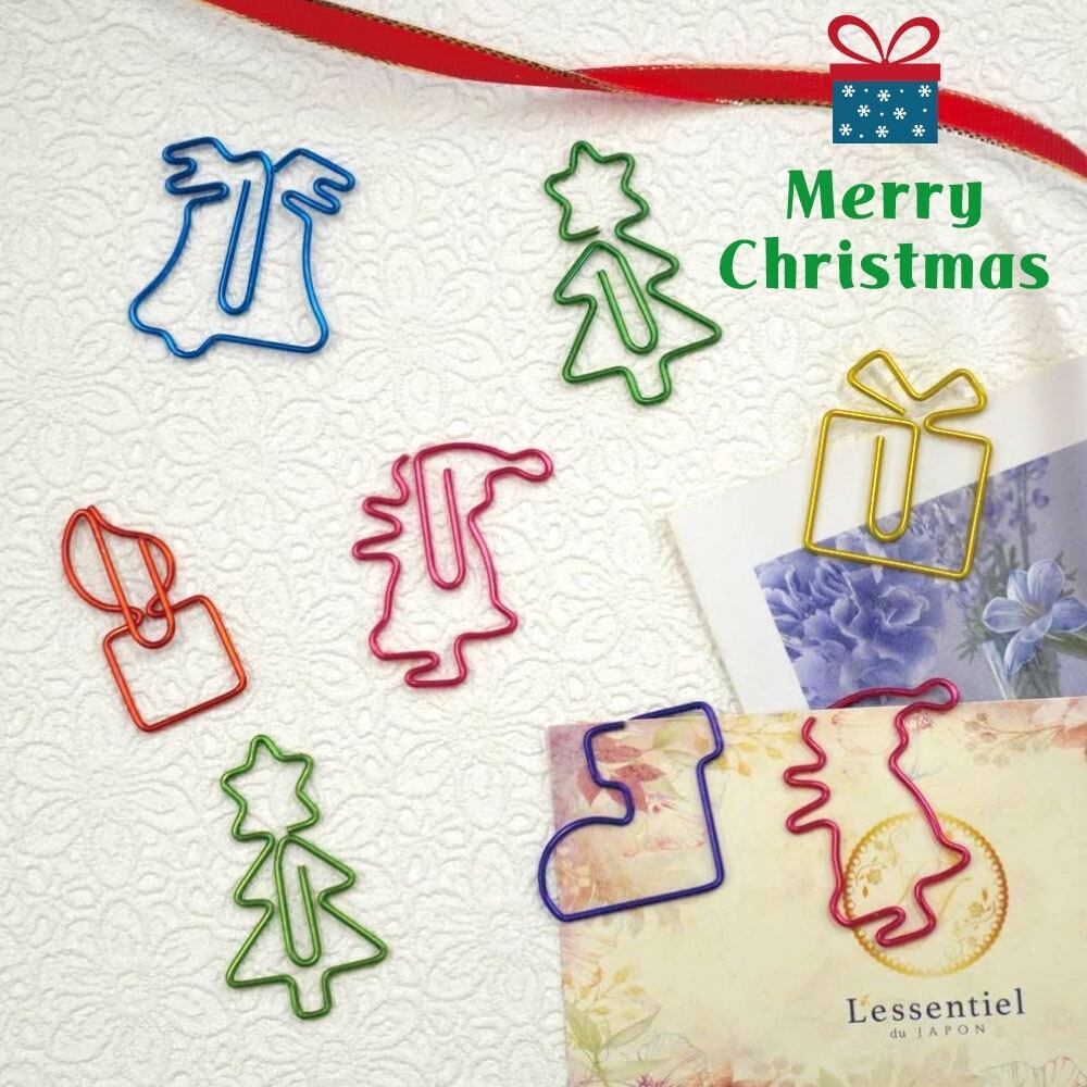 【クリスマスクリップ アソート】18個入り 6種類 ランダム サンタ ツリー エンジェル プレゼント キャンドル 靴下 天使 ホリデー カラフル ゼムクリップ ラッピング 学校 幼稚園 事務用品 ペーパーアイテム ブックマーク