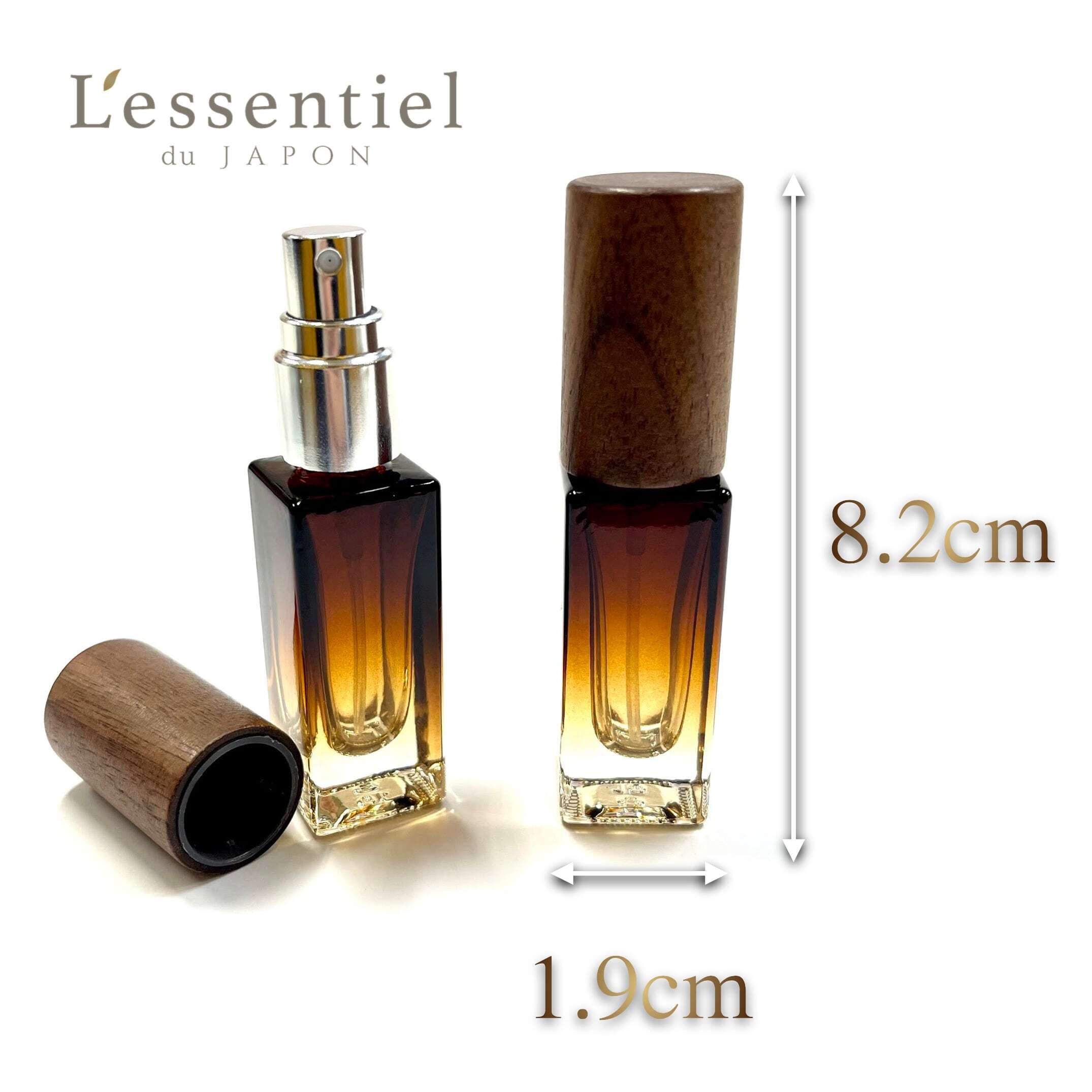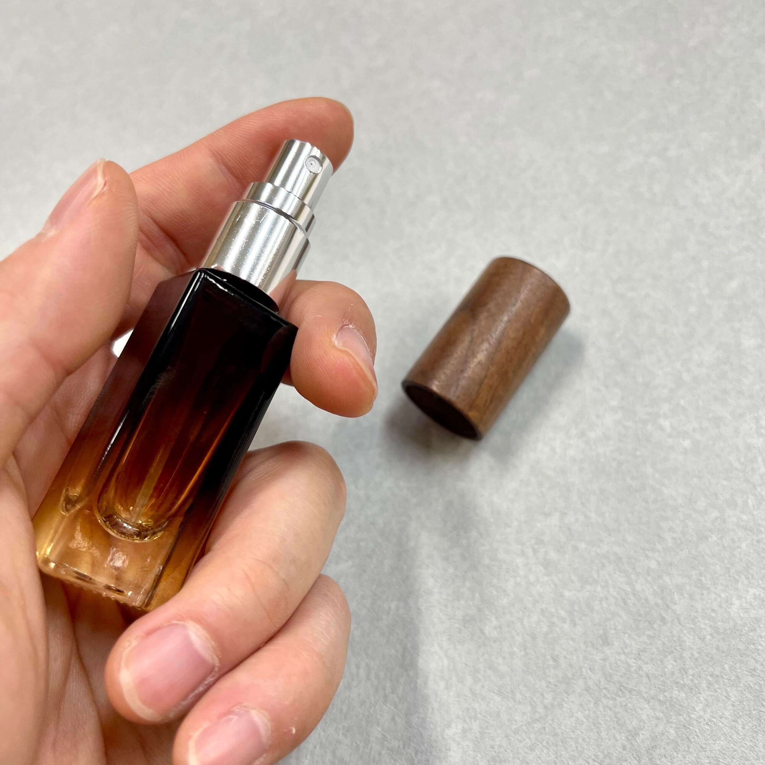 【 ウォールナッツ 木目 キャップ スクエア スプレー 容器 】 1本 5ml アンバー グラデーション シルバーノズル ガラス 詰替 天然 木 容器 ミスト 化粧水 アロマ 美容 高級感 瓶 プレゼント